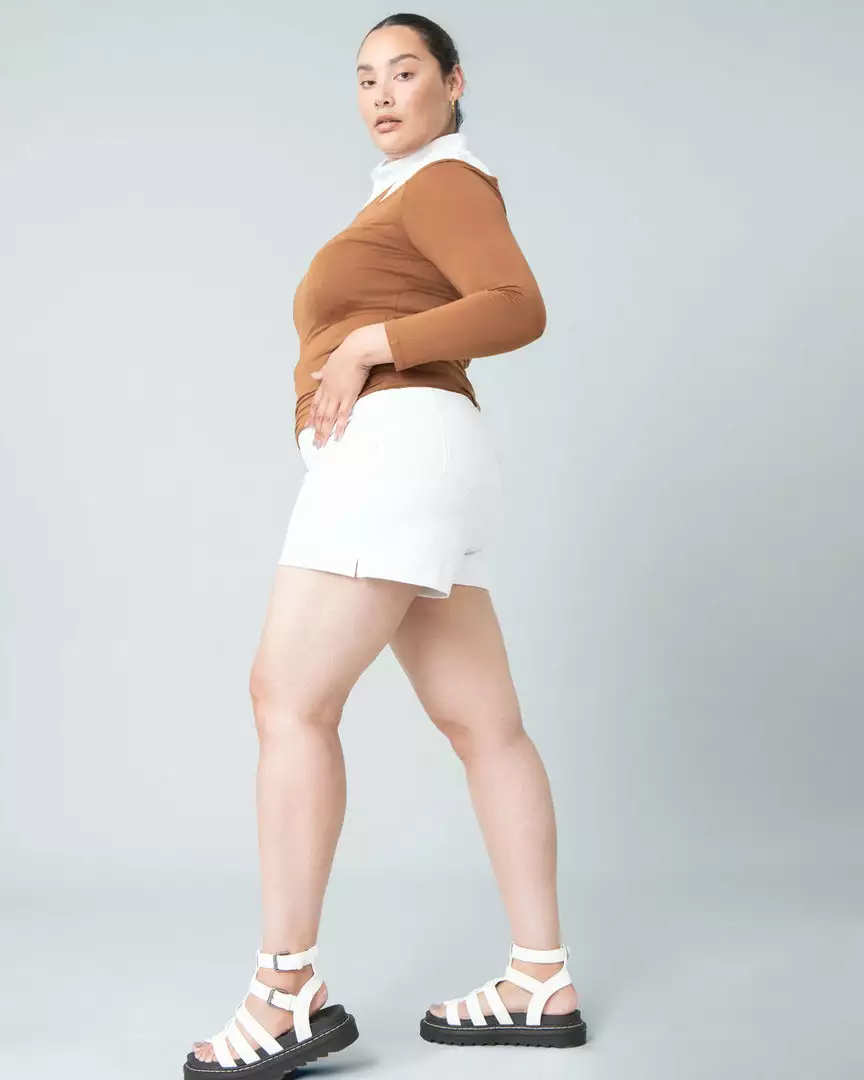 7 years in the making and hundreds of prototypes later, we’re introducing the best white short you’ve ever tried. This On-the-Go short features groundbreaking, patent pending Silver Lining technology that provides 100% opacity so that you can finally stop worrying if someone can see your underwear. Plus, no more pocket show-through, unsightly seam lines, bulky buttons or zippers. This is the most comfortable and flattering white short you can imagine!