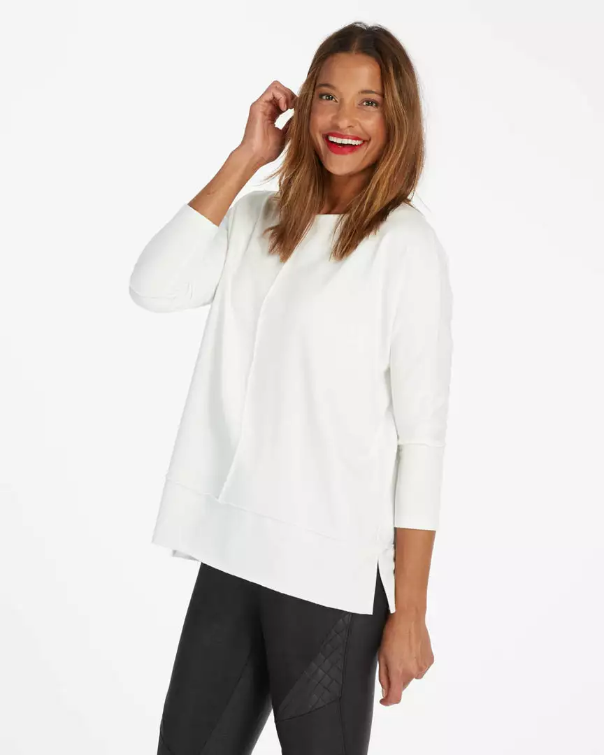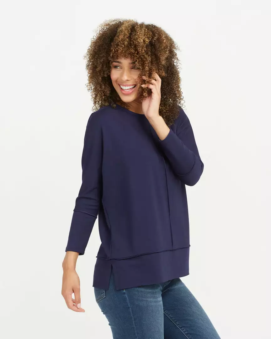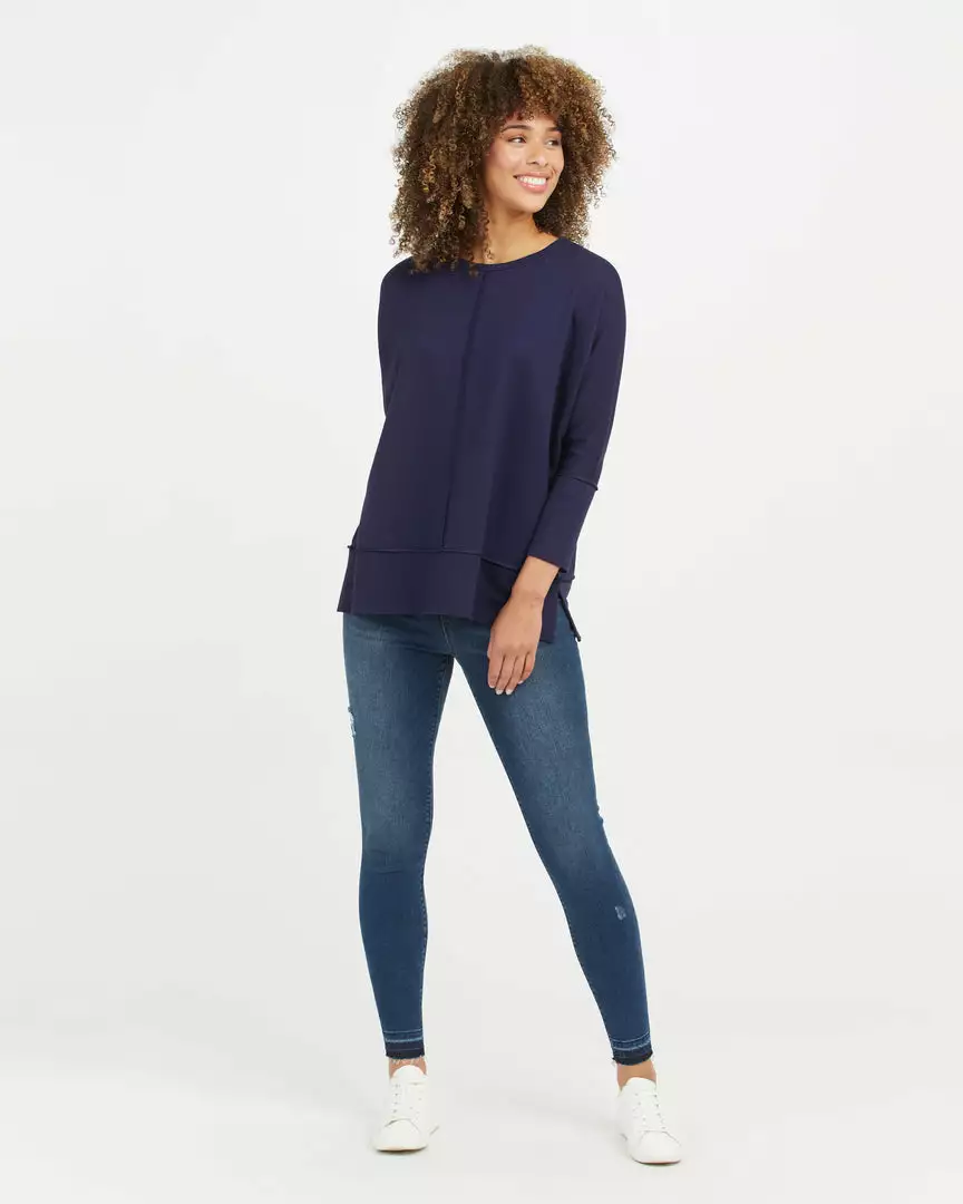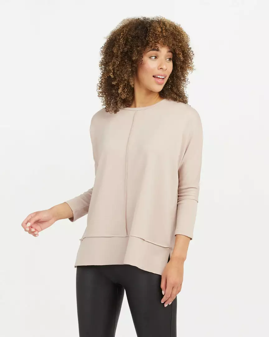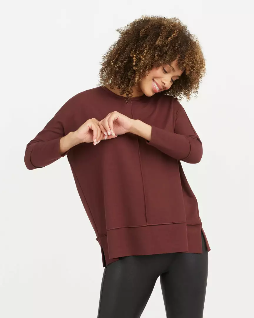 We designed this go-to top with incredibly cozy fabric that feels like your favorite sweatshirt (but with elevated style). Even better, there’s just enough length to cover your front and butt, making it the ideal match for leggings.